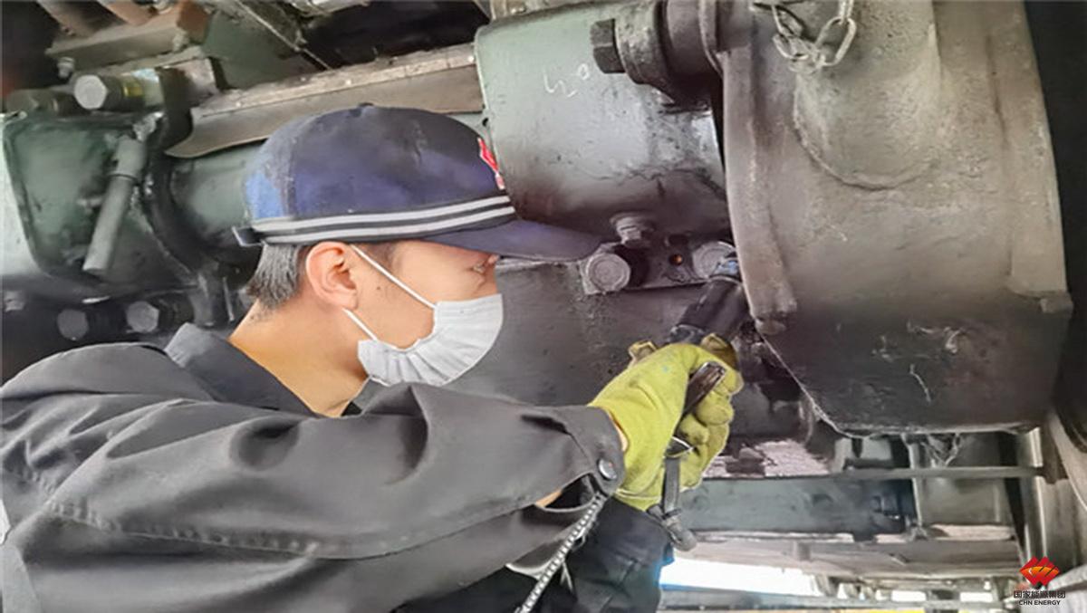 圖為該分公司檢修職工檢查機(jī)車走行部狀態(tài)