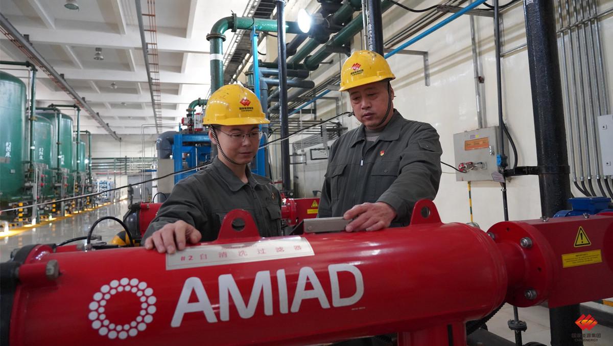 圖為該廠發(fā)電部人員正在對除鹽水預(yù)處理系統(tǒng)網(wǎng)式過濾器進(jìn)行檢查。
