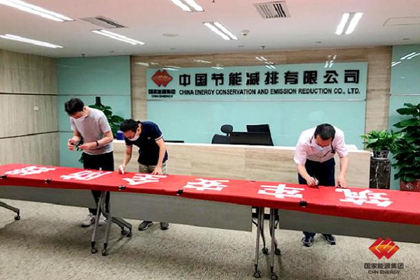 圖為節(jié)能公司員工在橫幅上簽名承諾