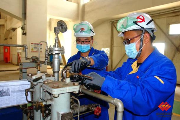 圖為員工正在檢查潤(rùn)滑油泵出口壓力。