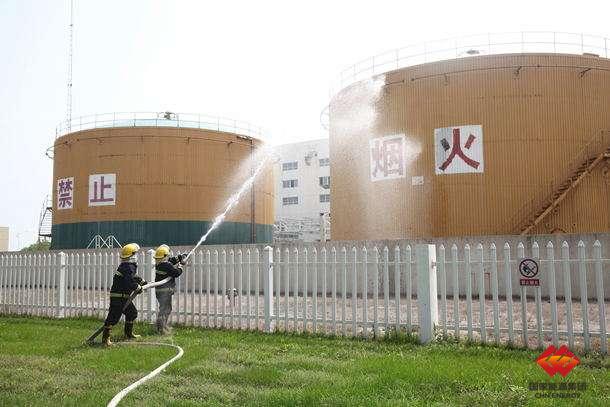 本次演練模擬該公司人員在巡檢過程中發(fā)現油區(qū)油罐頂部著火,第一時間匯報值長并迅速報警,并切斷電源啟動噴淋設施、泡沫滅火系統(tǒng)控制火情。該公司專職消防隊接警后火速支援,利用高壓水槍將火情徹底消除。該公司運行部、維修部、消防隊及相關部門人員參加了此次演習,生產技術部、安全監(jiān)察部對火災演習進行了監(jiān)督指導。