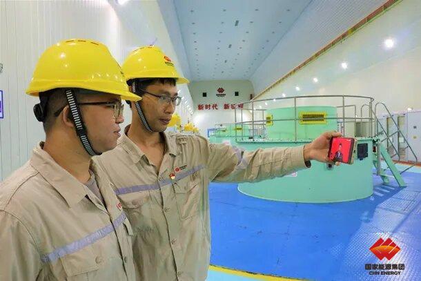 海南大廣壩水電廠運(yùn)行值班員在發(fā)電機(jī)層通過(guò)手機(jī)觀看中國(guó)共產(chǎn)黨第二十次全國(guó)代表大會(huì)開幕會(huì)。