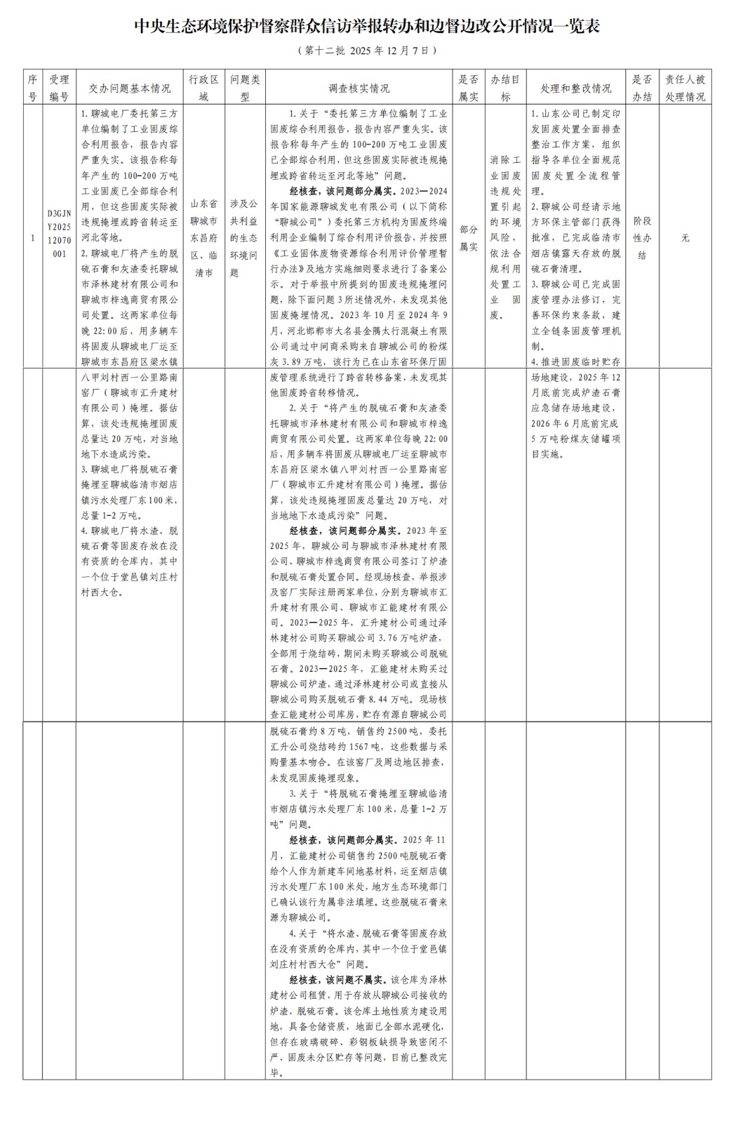 中央生態(tài)環(huán)境保護督察群眾信訪舉報轉(zhuǎn)辦和邊督邊改公開情況一覽表(第十二批 2025年12月7日)