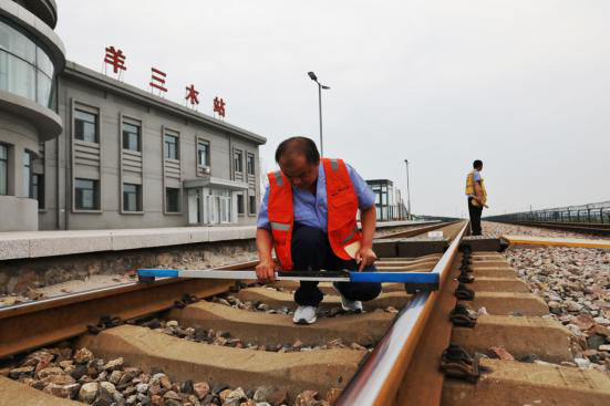 2011年時的羊三木站,離最近的公交站也有5公里,職工們休班回家要步行1個多小時才能走到公交車站,回趟家來回路上就得走2天。那時,羊三木站四周還是一片荒地,晴天一身土,雨天兩腳泥。工人們都住在簡陋的車站樓里,4個人一間宿舍,剛開始沒有電視,后來站里給配了臺電視,信號卻不好,不是聲音變調(diào),就是圖像不清,于是大家干脆不看。那時工友們最怕的就是下雨,由于沒有公路,當鐵路線上發(fā)生突發(fā)情況時,檢修車無法開出,只能靠大家肩扛手抬將檢修設(shè)備搬運到檢修點,既辛苦又費時間。于是,每次快下雨或剛開始下雨的時候,就趕緊把各種搶險工具裝到車里,把車提前開到公路上待命。在車上待命的人要忍受悶熱和蚊蟲叮咬,有時一待就是一個晚上,但卻保證了及時快速完成搶險維護。
