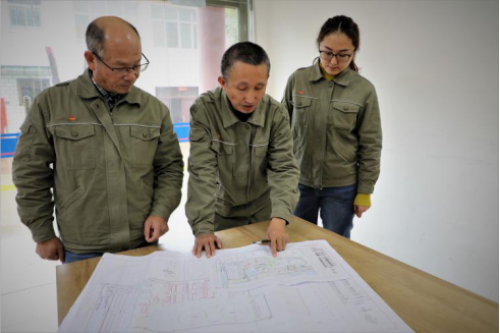 圖為范小兵在隨州公司審閱圖紙
