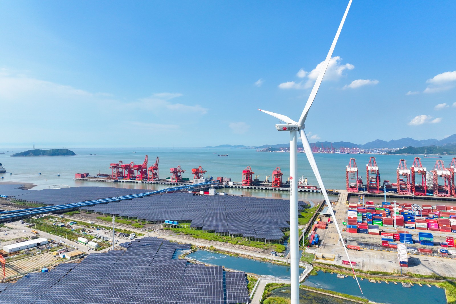 圖為北侖電廠的風(fēng)電與光伏設(shè)備