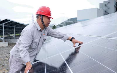 圖為寧海電廠工作人員正在檢查光伏板(寧海電廠劉志林攝)