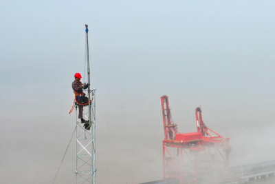 圖為北侖電廠廠內(nèi)安裝測風塔(北侖電廠張夢雷攝)