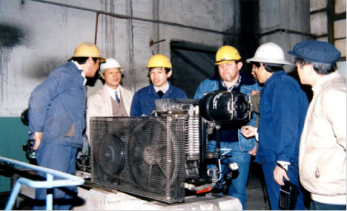 1986年該廠員工和外國專家共同進(jìn)行設(shè)備改造