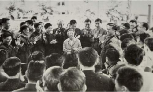 圖為鄧穎超在緬甸大使館接見(jiàn)援建人員