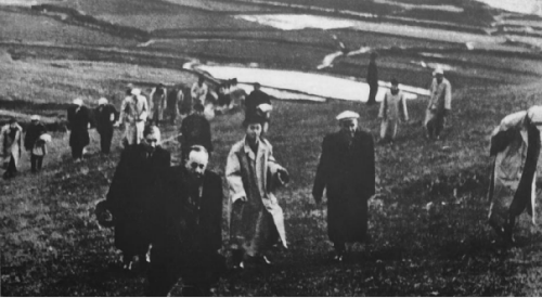 圖為蘇聯(lián)專家現(xiàn)場(chǎng)勘探選址