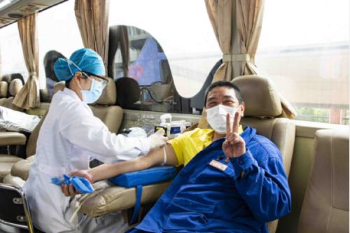 圖為志愿者參與無(wú)償獻(xiàn)血