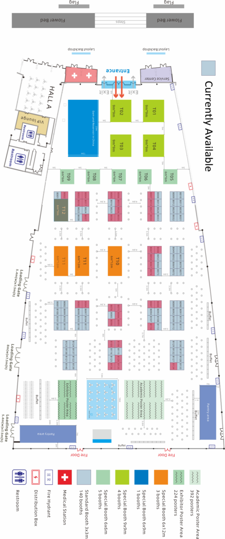 (二)參展展位示意圖:展位圖附后,展位(T12)面積為54㎡(6m×9m),限高6m,不允許吊裝。