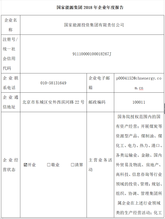 國家能源集團2018年企業(yè)年度報告