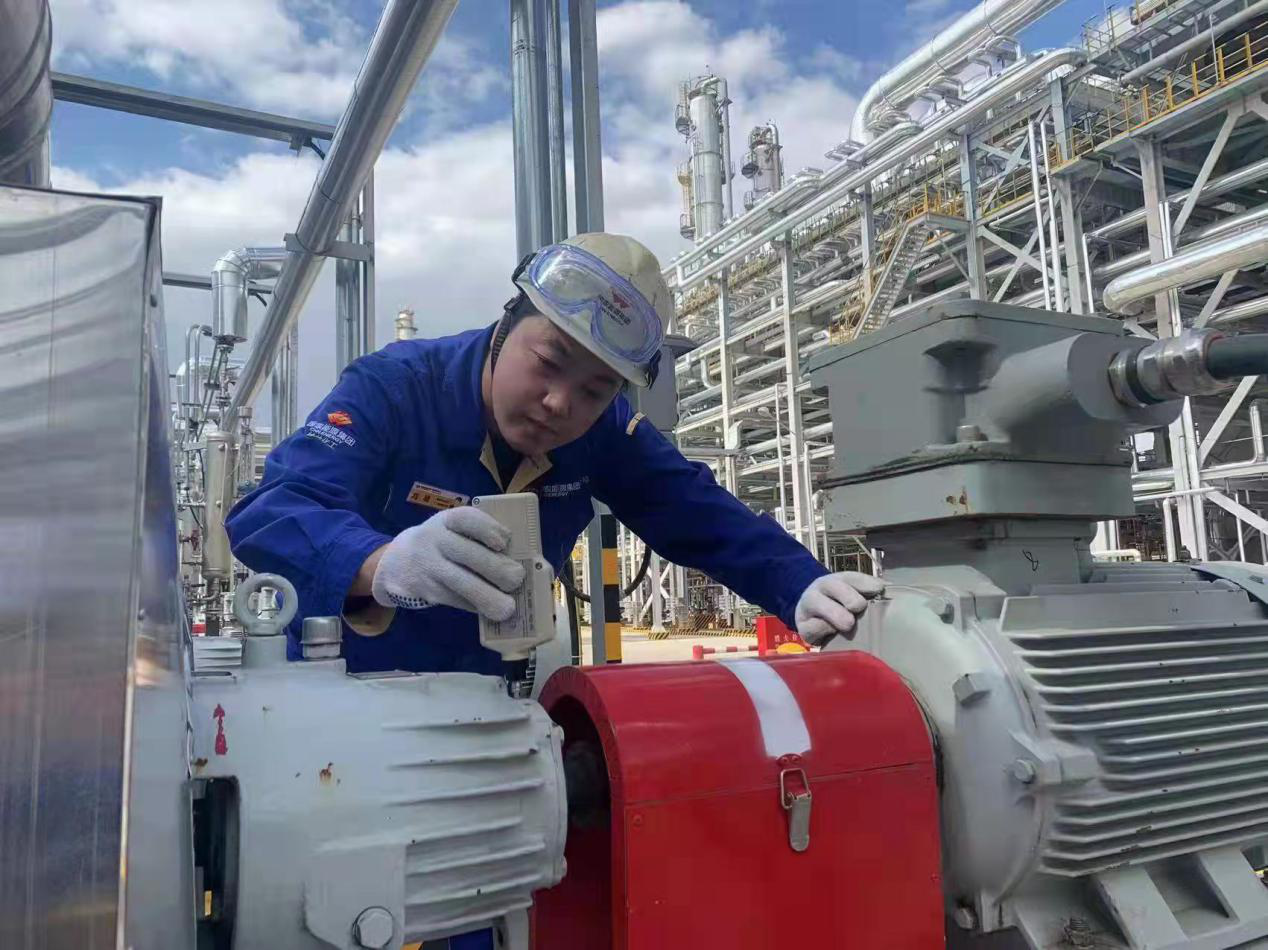 圖為劉禎使用測振儀測量機(jī)泵振動是否正常