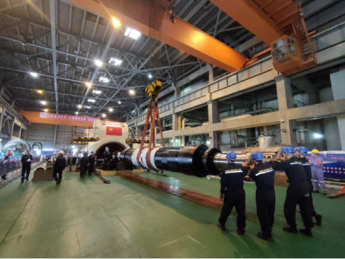圖為安徽銅陵公司工作人員正在進(jìn)行發(fā)電機(jī)轉(zhuǎn)子回穿作業(yè)