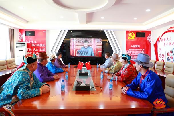 圖為勝利能源露天礦蒙古族員工在會議室收看慶祝中國共產(chǎn)黨成立100周年大會盛況