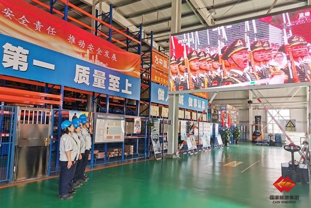 圖為勝利能源物資供應中心員工在物資倉庫收看慶祝中國共產(chǎn)黨成立100周年大會盛況