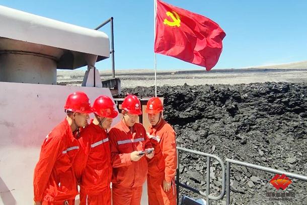 圖為勝利能源露天礦采掘隊員工在電鏟上收看慶祝中國共產(chǎn)黨成立100周年大會盛況