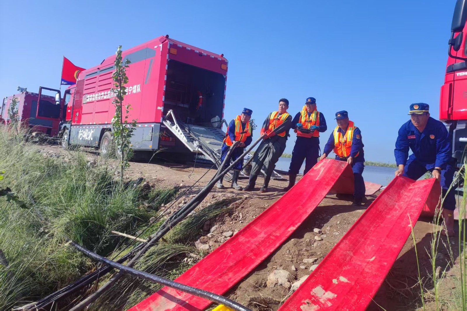 圖為寧煤應(yīng)急救援總隊(duì)跨區(qū)域增援內(nèi)蒙古防汛救災(zāi)排澇任務(wù)