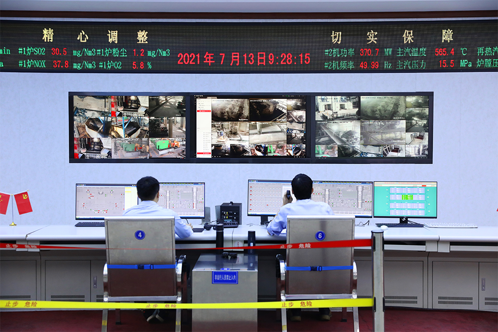 圖為在寶慶電廠集中控制室,運(yùn)行值班員劉帥、陳偉正在監(jiān)盤(pán)。