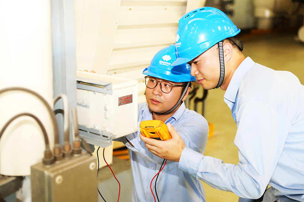 圖為寶慶電廠設(shè)備管理部機(jī)控班助檢員雷天聞、張者在#1機(jī)#3高壓電接點(diǎn)水位計(jì)檢查