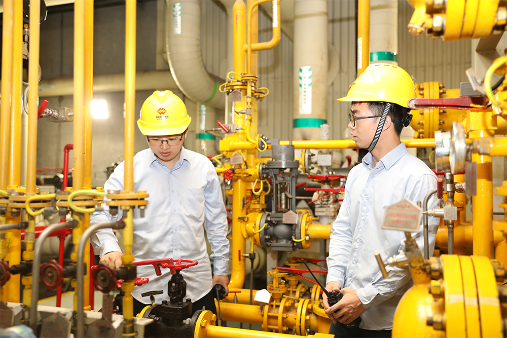 圖為寶慶電廠發(fā)電運(yùn)行部巡檢員顏慶江、劉棵正在車(chē)間里調(diào)節(jié)氫側(cè)密封油壓差