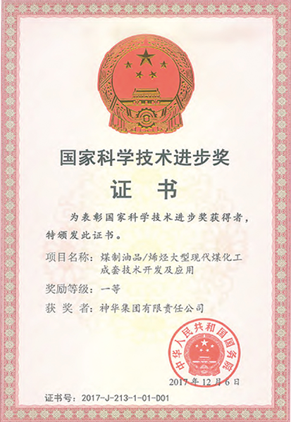 Coal chemical technology for large-scale coal-to-liquid and coal-to-olefin projects: The group has established the world’s first demonstration project of direct liquefaction of one-million tons of coal and 600,000-ton coal-to-olefin, making CHN Energy the only energy enterprise in the world that operates large-scale coal-to-liquid and coal-to-olefin projects at the same time. The technology won First Prize of China’s National Science and Technology Progress Award and China Patent Gold Award and has been recognized by nine countries including Russia, the United States and India.